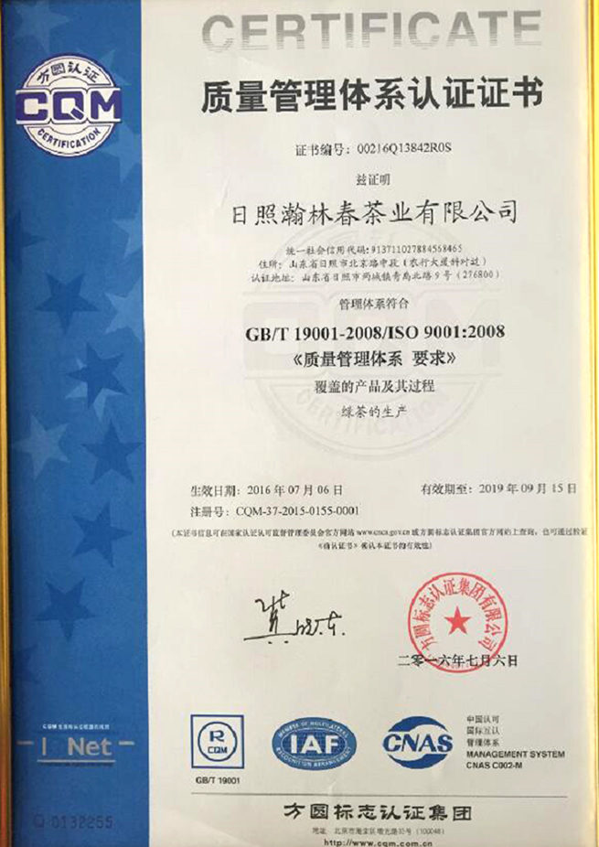 瀚林春茶业从2013年至今每年都获得国家颁发的”有机产品认证证书“,证书编号:0020P1500083